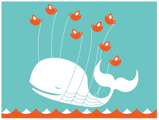 Quando a janela se abriu, que frustração!!!… Uma baleia feliz, afundando em alto mar; era a primeira vez que isso me acontecia.  Apesar do impacto visual, fechei e abri novamente. O cenário já havia mudado e então pude navegar através dos perfis dos twitteiros e descobri muita informação interessante, postadas por pessoas, também interessantes. Num primeiro momento selecionei algumas pessoas, sites e até programas que me interessaram.