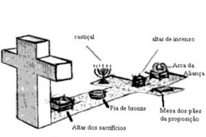 Cada item do Tabernáculo, tanto os objetos, quanto as cortinas, os tecidos, as cores e inclusive a disposição deles, têm uma simbologia que apontava para a salvação através de Jesus Cristo e o acesso do homem a Deus. Veja como a disposição dos objetos do tabernáculo refletem a imagem da cruz.