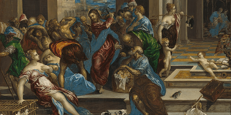 Tendo Jesus entrado no pátio do templo, expulsou todos os que ali estavam comprando e vendendo; também tombou as mesas dos cambistas e as cadeiras dos comerciantes de pombas. E repreendeu-os: ‟Está escrito: ‘A minha casa será chamada Casa de Oração’; vós, ao contrário, estais fazendo dela um ‘covil de salteadores’”. Então levaram a Jesus, no templo, cegos e aleijados, e Ele os curou. (BKJ, Mt. 21:12-14)